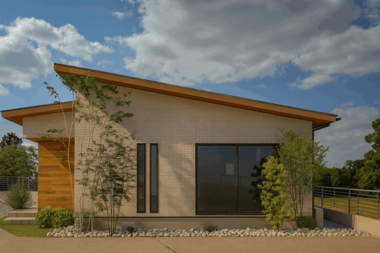 片流れ屋根のデザインで整えたコンパクトな平屋住宅